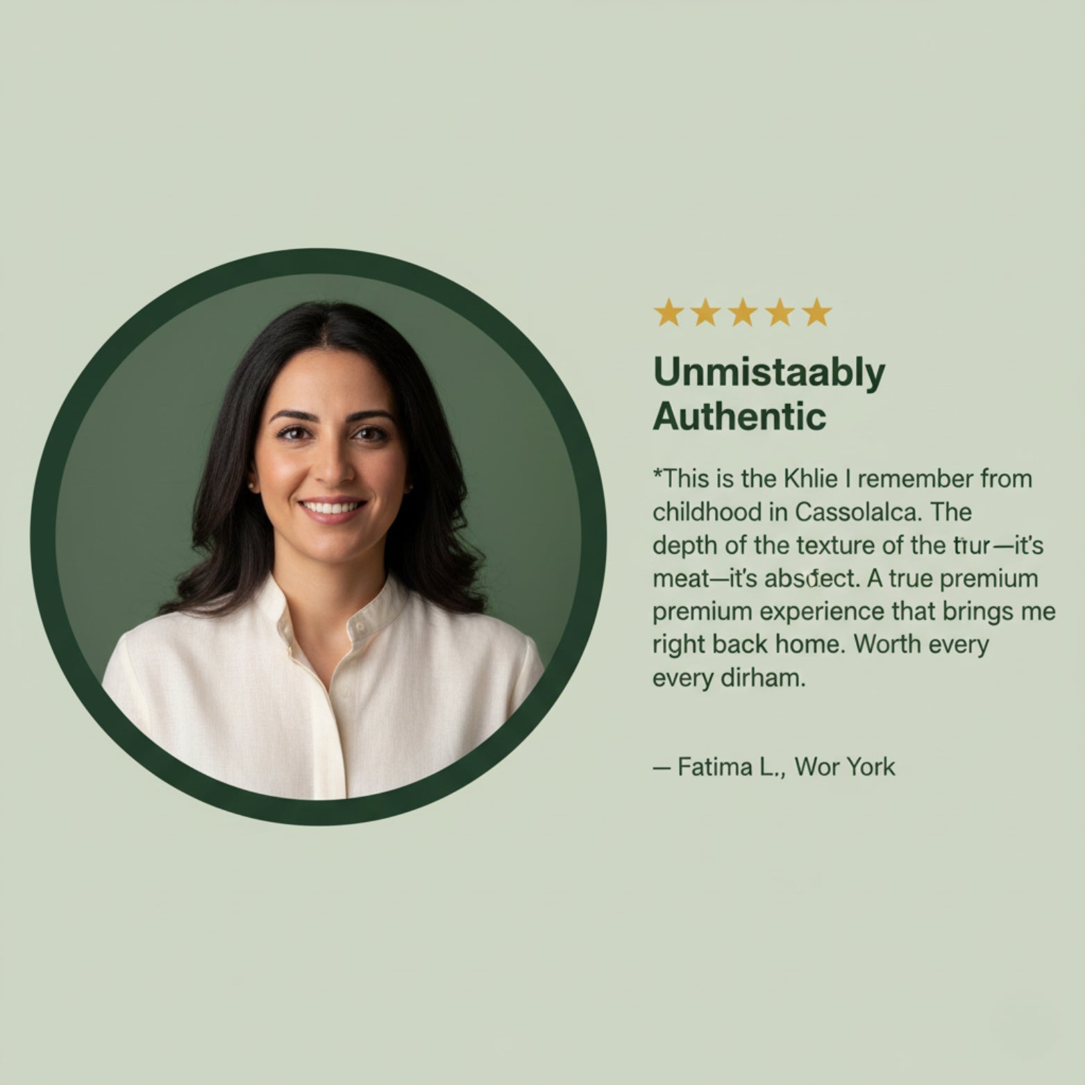 This is a crucial distinction! We honor the authentic preparation technique (slow-cooking the premium beef with the classic Moroccan spice blend) which gives the Khlie its signature taste. The innovation lies in the preservation: we use Pure, High-Quality Olive Oil instead of Smen/D'han. This substitution allows us to maintain the rich flavor profile while offering a cleaner, lighter version perfect for a modern, health-conscious diet. You get the genuine taste without the traditional saturated fats.